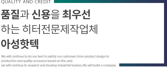 끊임없는 연구, 개발을 하여, 세계적인 산업용 히터 전문업체의 면모를 이룩할 것입니다.